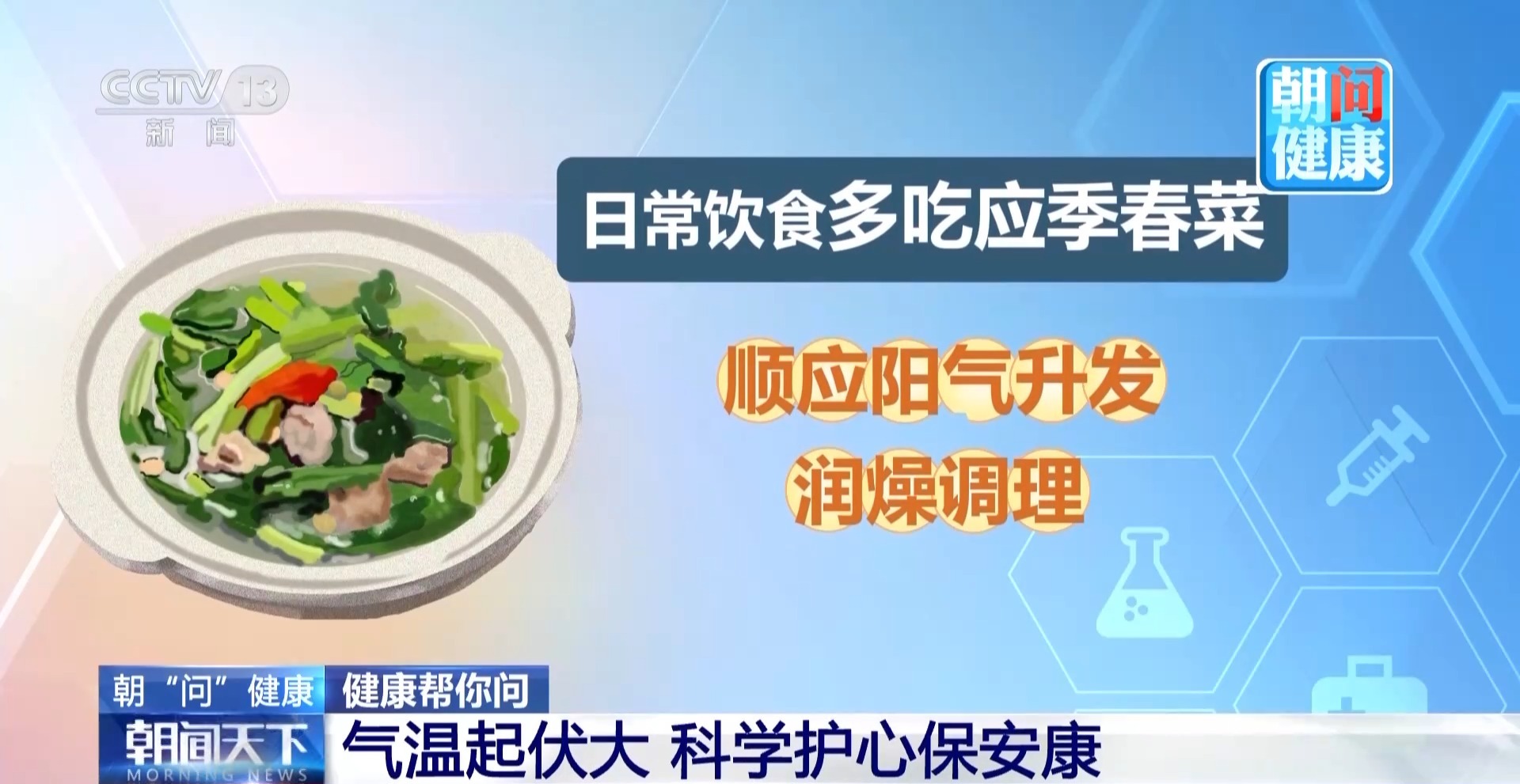 北京中医药大学东方医院名医堂主任医师 商洪才:很多人觉得春天暖和了,对心血管更友好,其实恰恰相反。晚春昼夜温差大、气温忽高忽低,这种反复、剧烈血管舒缩比持续低温对血管刺激更大,更容易诱发斑块不稳定、心脑血管意外。所以春季护心重点不是保暖,而是“稳”—— 稳定血压、稳定作息、稳定情绪。