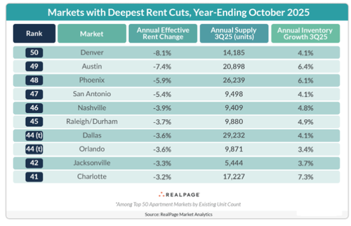 租金创纪录下跌:据CoStar数据,10月租金环比下降0.31%,是超过十五年来的最大单月降幅。