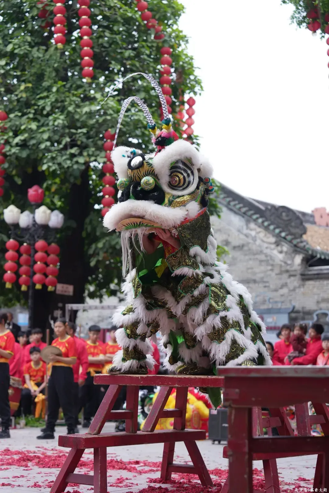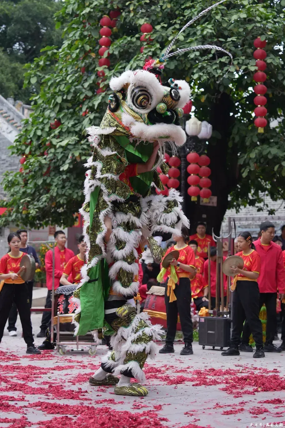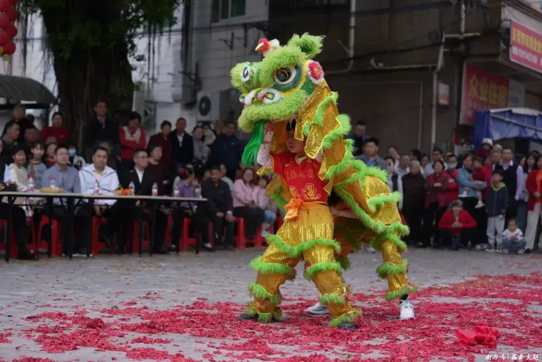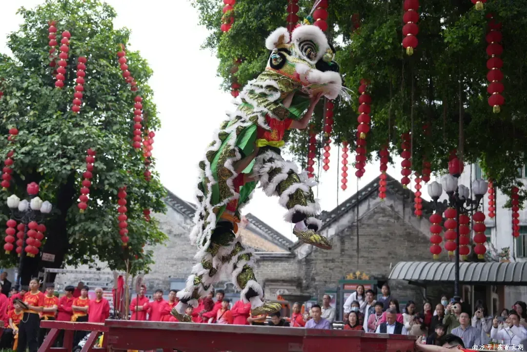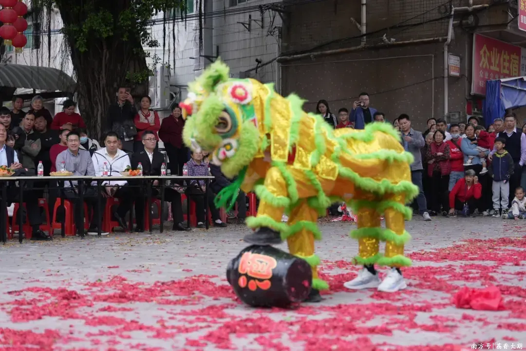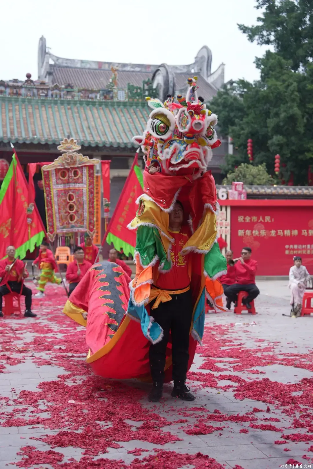 伴随着鼓锣声响起,威风凛凛的醒狮与灵动的麒麟轮番登场,腾、跃、跳、扑等一系列动作行云流水、形态逼真,尽显传统民俗的独特魅力。