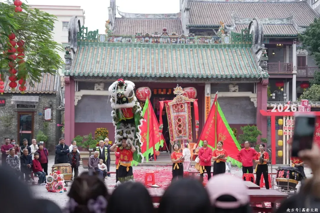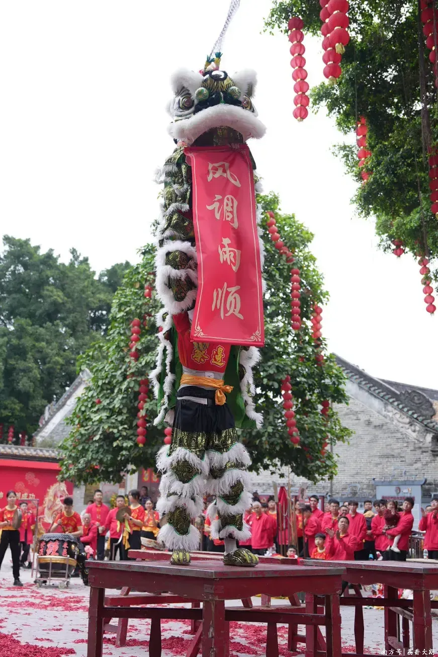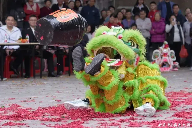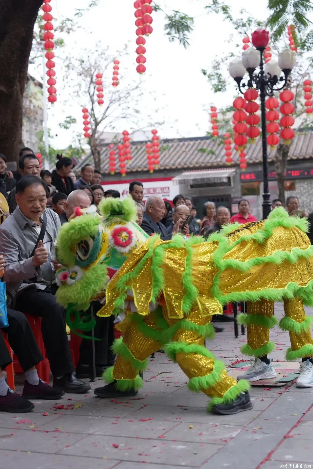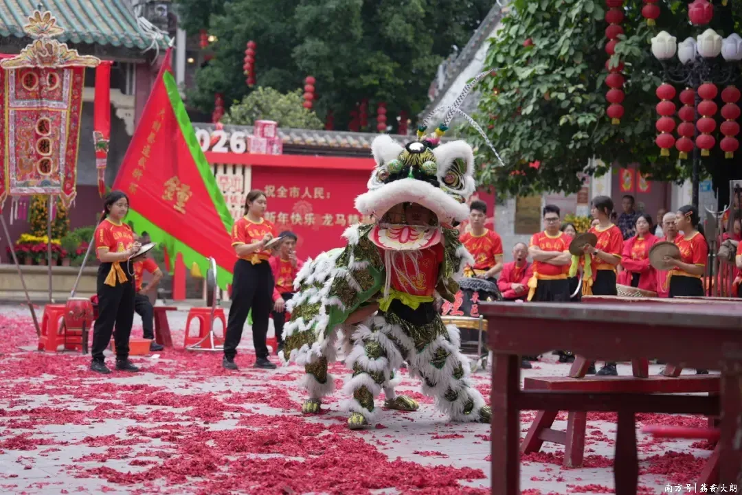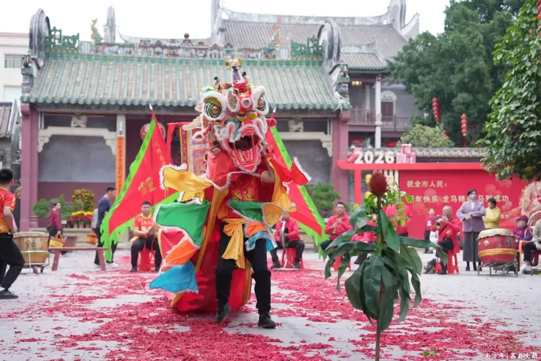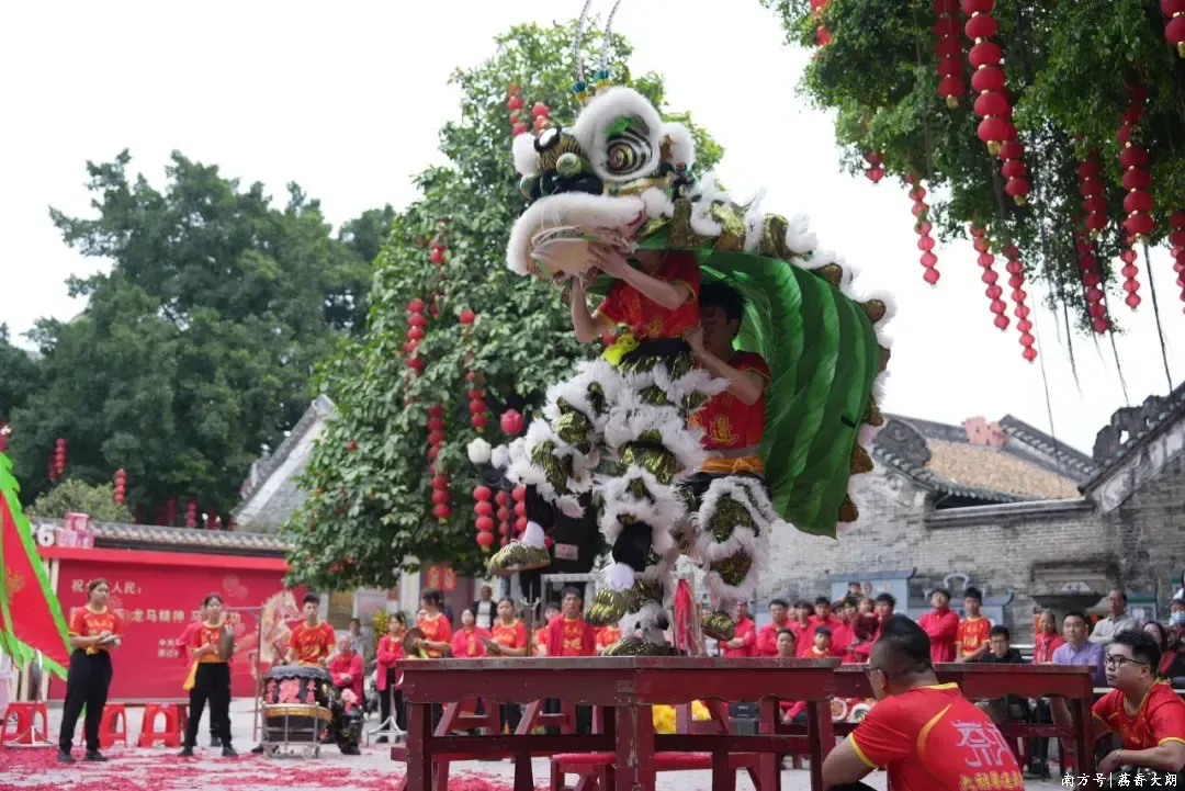 伴随着鼓锣声响起,威风凛凛的醒狮与灵动的麒麟轮番登场,腾、跃、跳、扑等一系列动作行云流水、形态逼真,尽显传统民俗的独特魅力。