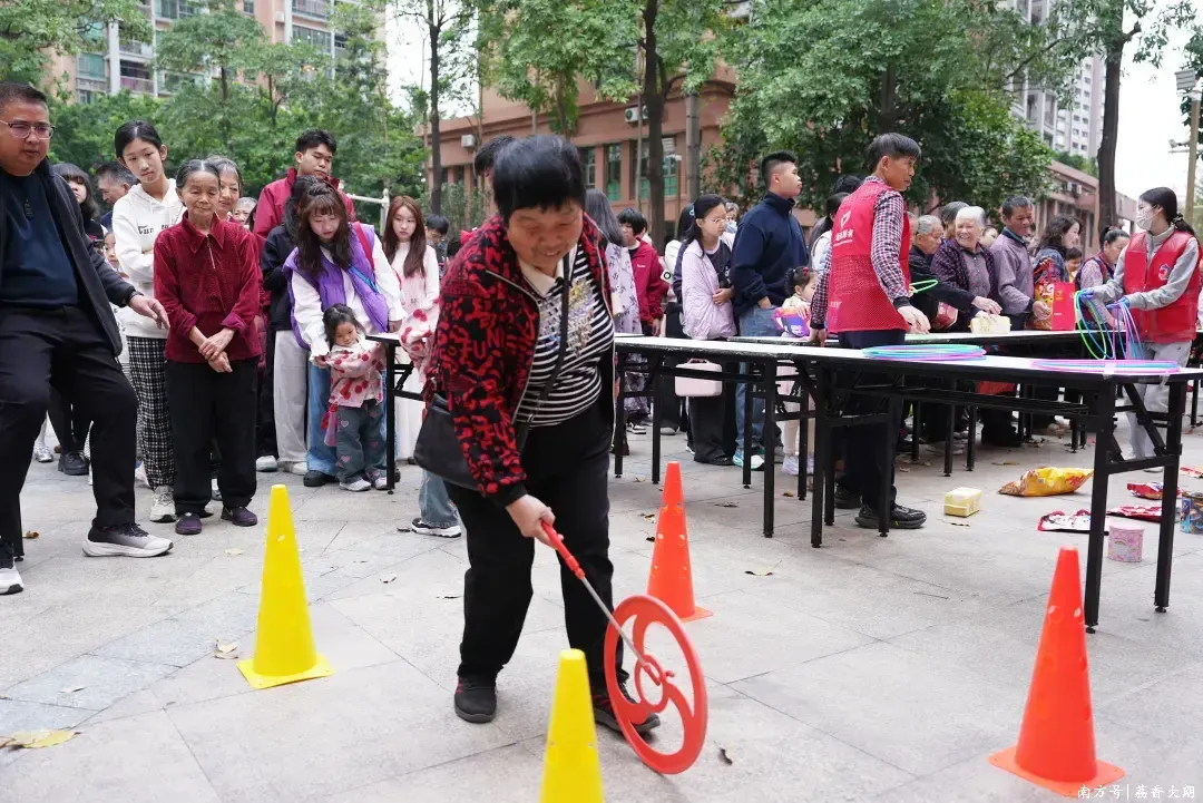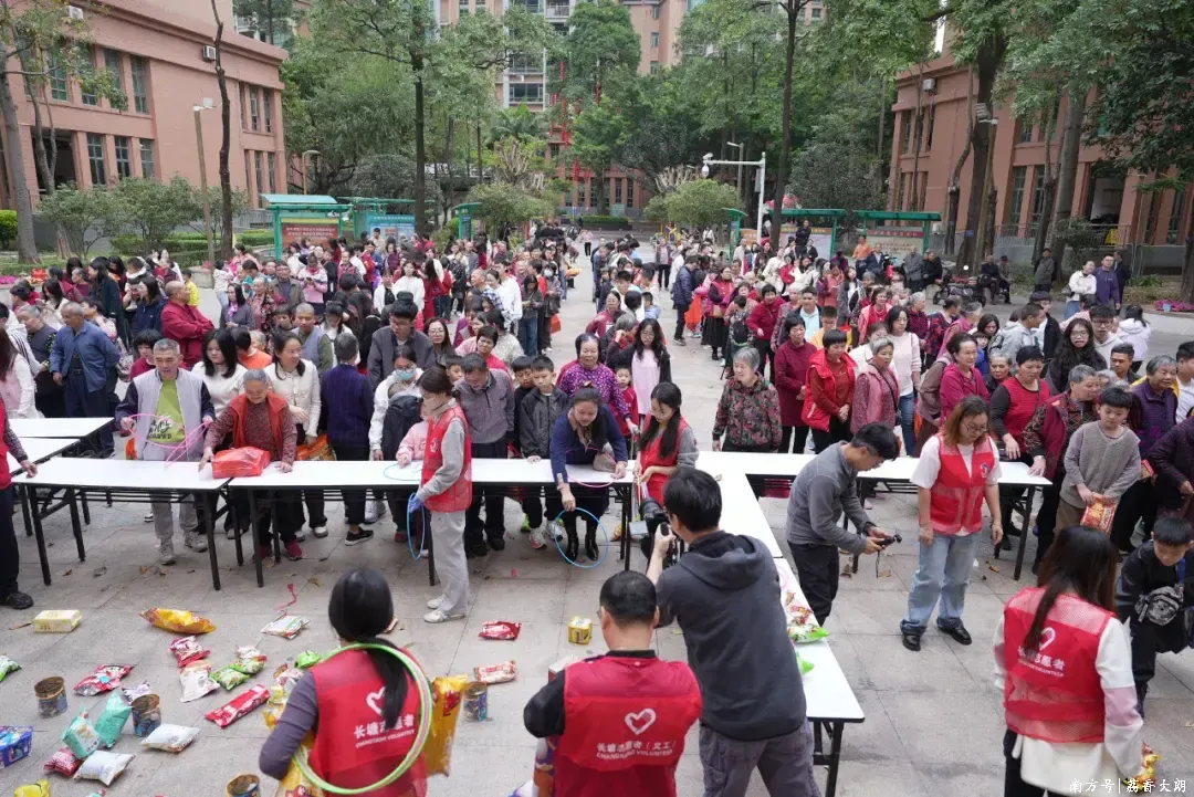 长塘社区同样年味浓郁,花园舞台处聚满了男女老少,居民们在工作人员的有序指引下,兴致勃勃地参与各项新春趣味游戏。