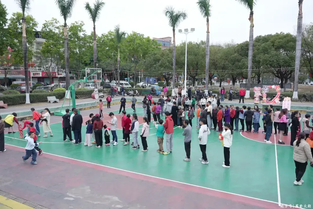 沙步村的新春游园活动也在村的篮球场上欢乐开启,各个游戏摊位前都围满了热情参与的村民。